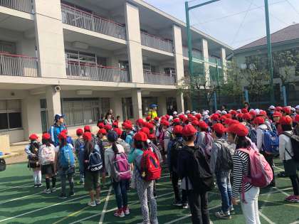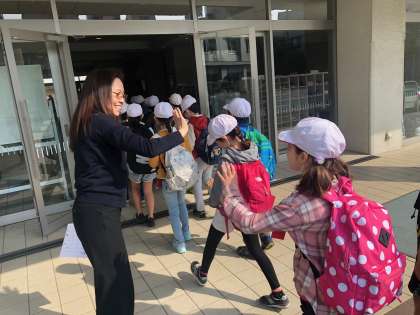4月19日、3年生と4年生が一緒にズーラシアに遠足に行きます。お天気に恵まれ、これからみんなで仲よく遠足の1日を楽しみます。たくさの教職員の見送りの中、学校を出発。8時30分にバスが出発しました。