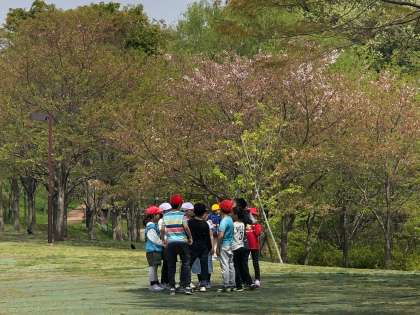 午前の見学が終わり、早いグループがころころ広場に到着しました。先生に到着を報告してグループで楽しいひとときを過ごしました。