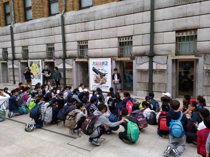 予定より早く到着しました。集合写真を撮って、班行動を開始します。午前中は日本館の見学です。