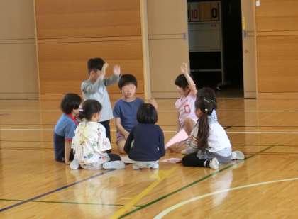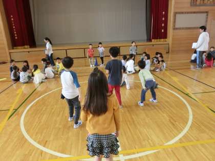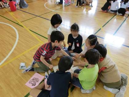 事前の話し合いが終わった班から、仲良くなるためのグループ遊びが始まりました。2年生が1年生をリードして、「だるまさんが転んだ」や「ハンカチ落とし」などを楽しみました。1年生と2年生が仲良く活動する姿・・・ほんとうにほほえましかったです。