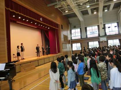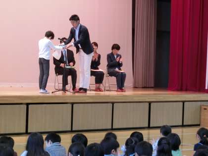 駒沢小学校のすてきなところをたくさんお話していただきました。「みんなの元気なあいさつからいつもエネルギーをもらっていました。」「みんなが笑顔でがんばっている駒沢小学校、あたたかな雰囲気が大好きです。」「友達を認め合えることができる皆さんが大好きです。」と、子供たちの明るく元気で、そして優しいところをいっぱい伝えてくださいました。子どもたちも精一杯の思いを表現しました。