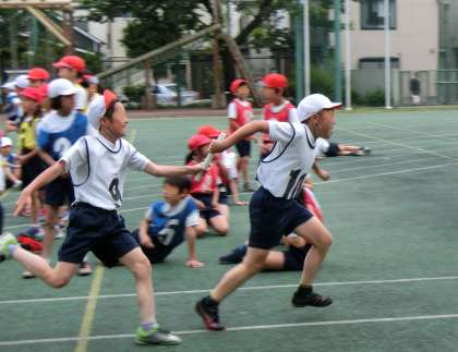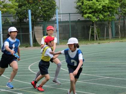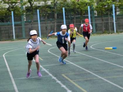 高学年リレー練習の様子です。最初の集まりではリレーコースを確認することを目的にまず走ってみました。今日の走りを再確認しながら、作戦を立てたり細かい技の練習を重ねていく予定です。