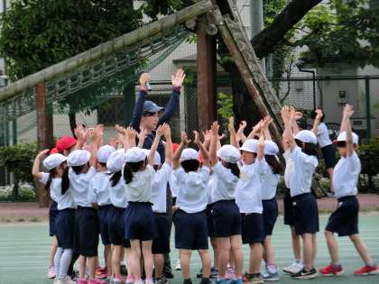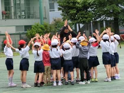 各学年、運動会の成功をめざして練習に取り組んでいます。今日は1年生の様子をお伝えします。校庭で隊形移動の練習をしている場面です。みんなで協力して上手にサークルを作ることができました。練習を重ねるごとに上手になっていく1年生。これからが楽しみです。
