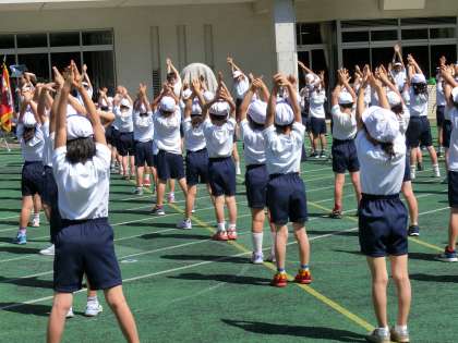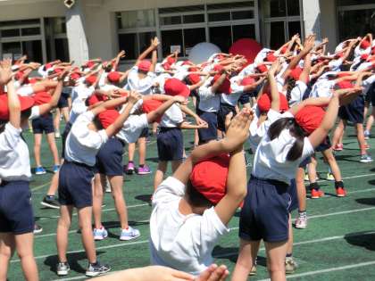 整理運動と閉会式の練習をしました。閉会の言葉、成績発表、優勝杯と準優勝盾の授与、校歌斉唱とその指揮など、子どもたちの活躍もたくさんあります。ぜひ、最後までお残りいただき、子どもたちの活躍を見守っていただきますようお願いします。