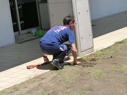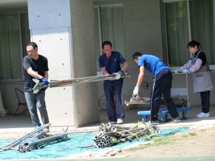子どもたちがリハーサルを行っているころ、学校主事は倉庫からテントを出しはじめました。校庭の環境整備もしています。運動会の準備が着々と進められます。PTAの皆様、地域の皆様もそれぞれのお立場で動いてくださっています。みんなで力を合わせて運動会を成功させたいと思います。