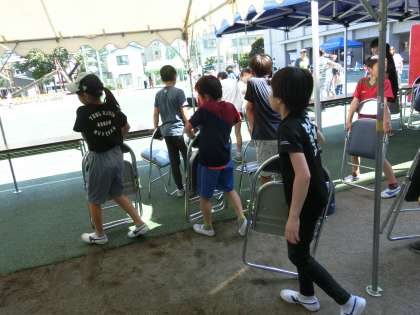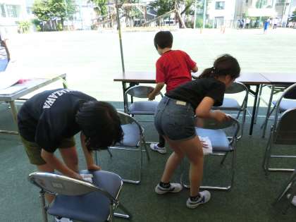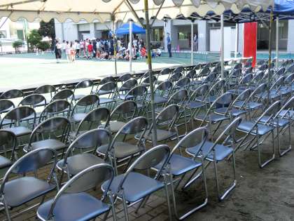 来賓席・敬老席に並べる椅子を運んだり拭いたりしました。きれいに並んだ椅子から子どもたちのがんばりが伝わってきます。
