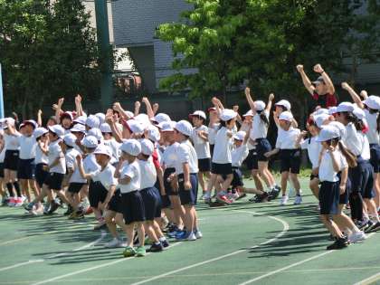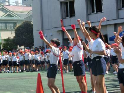 運動会 「転がせ 転がせ 大玉送り」 全校児童