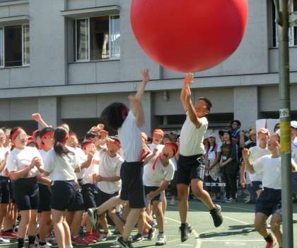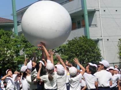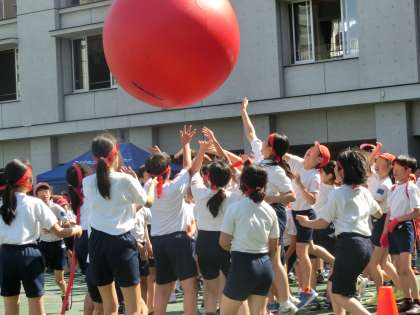 全校の子どもたちが力を合わせました。みんなの心が大きな大きな玉に向かいました。大きな赤白の玉が子どもたちの心を映し出すように、高く高く弾みます。元気いっぱいに取り組んだ全校競技。白熱した競技にわくわく心が高鳴りました。