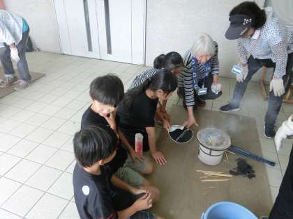 4年生が社会科で「昔の生活について」学んでいます。その一貫として「七輪」を体験しました。ガスや電気で瞬時にエネルギーを得ることのできる時代に生きる子どもたちが、自分たちで火をおこし、七輪で生活していたころを体験しました。この日はたくさんの皆様にご協力いただきました。おかげで安全で楽しい学習になりました。学びを深めることもできました。