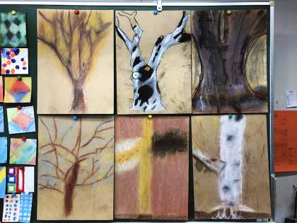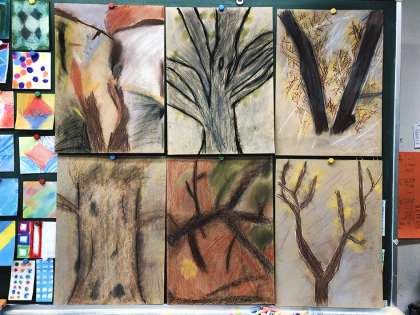4年生、「木々との対話」のつづき。(図工専科)