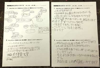 写真上:ワークシートに書き出した身近な環境問題とキャッチコピー