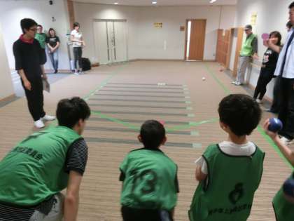 試合の合間に、ボッチャを体験することができました。ルールをすぐに理解した子どもたち、みんなで楽しむことができました。