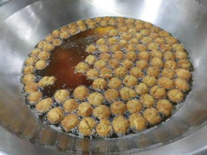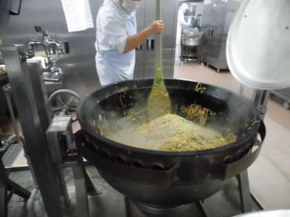 今日は沖縄の素朴なお菓子、「サーターアンダーギー」を給食室で手作りしました。三温糖と黒砂糖を使いましたので、コクのある味に仕上がりました。黒砂糖は糖分だけでなくミネラルも豊富です。焦がさないように低温でじっくり揚げました。