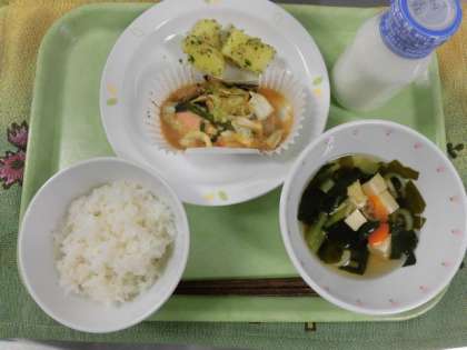 今日は北海道の郷土料理「鮭のチャンチャン焼き」でした。味付けは食べやすく甘めの味噌味でしたが、野菜が苦手なのか減らしている子もいました。