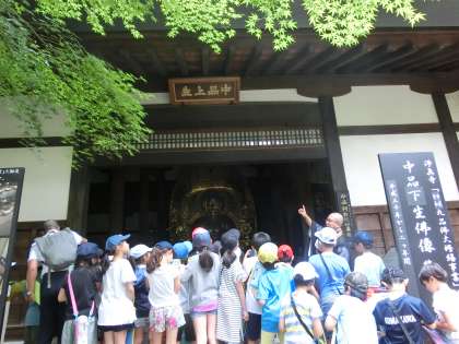 6月25日、3年生が社会科見学に出かけました。最初の見学場所は、九品仏浄真寺です。お寺の住職様にほんとうにたくさんのことを教えていただきました。人としての生き方、自然や歴史や文化を大切にする心・・・・・子どもたちも必死に聞いていました。とても貴重な文化財もたくさん見せていただきました。