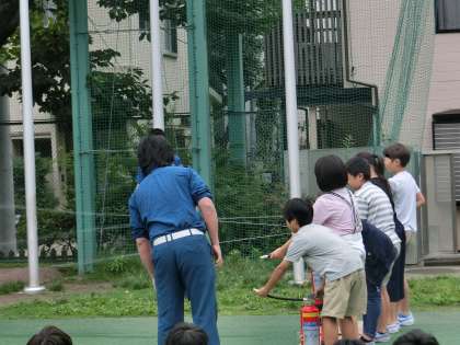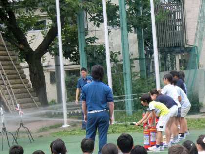 いざという時に備えて6年生全員が初期消火訓練に参加しました。「火事だ!」と大きな声で状況を周囲に伝えることが大切だと教えていただきました。みんなで声を出し合い、訓練に臨みました。最後に防災課の皆様が「こんなに大きな声で、一生懸命に練習してくれる6年生はなかなかいません。みんなよくがんばっていました。」とほめてくださいました。お礼の言葉を大きな声で伝え、訓練を終えました。