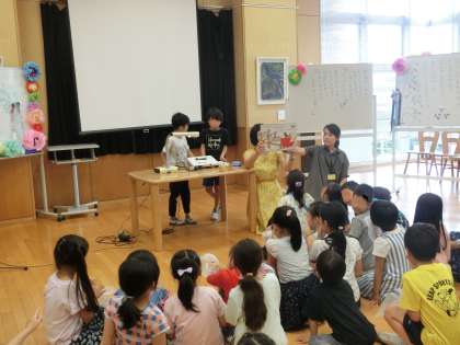 7月6日、土曜授業日の午後、「きのこのへや たなばた会」が開催されました。七夕の日に合わせて紙芝居や絵本の読み聞かせをしていただきました。たくさんの子供たちが集まって、楽しいひとときを送ることができました。