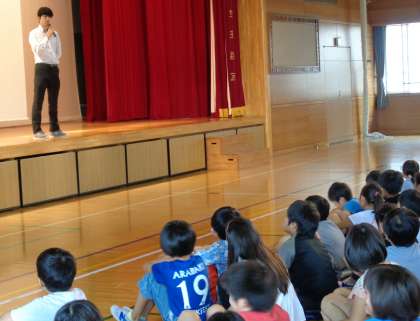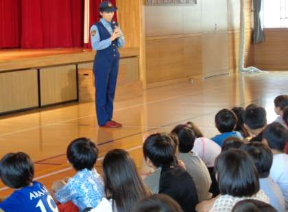 終業式が終わりました。その後、世田谷警察署交通課の警察官の方から、夏休みの過ごし方について二つのお話をしていただきました。「交通ルールを守りましょう」「生活ルールを守りましょう」という話です。子どもたちもしっかりと受け止めながら聞いていました。この1学期、警察の皆様からは、子どもたちの登校を毎日見守っていただきました。時には交差点で、時には正門近くで、時には自転車に乗って通学路を何往復もしていただきましたことをこの場でお伝えします。続いて、学校の生活指導担当の教員から、夏休みの過ごし方について、3つの約束を伝えました。交通安全「ト・マ・ト」の約束(「とまって」・「まって」・「とびださない」)、安全のため忘れ物は取りにこないよう持ち帰るものを確かめる約束、夏の水泳指導の時はサンダルではなく靴で登校し校舎内は上履きをはく約束です。安心・安全な夏休みを送ってほしいと願っています。