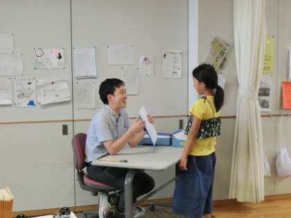 先生から「あゆみ」を受け取ると、自席でもう一度確認する子どもたち。真剣なまなざしです。みんながんばりました。ご家庭でも1学期を振り返り、成長を認め、励まし、褒めていただければと思います。