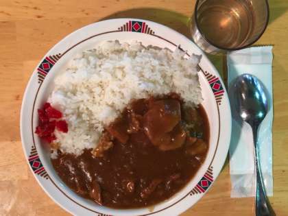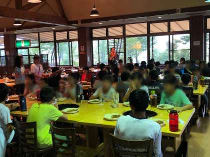 たくさん遊んだ後は、早めのお昼です。みんなの大好きなカレーです。仲間と食べる最後の食事です。