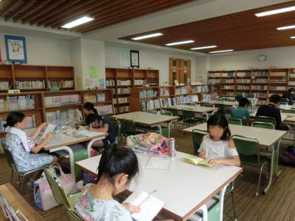夏休みの期間、夏季水泳指導が行われる日の午前8時30分から午後12時20分まで学校図書館を開館しています。今日も、何人かの子どもたちが本に親しんでいました。静かな空間の中で一生懸命に本を読む子どもたちの姿をうれしく見守りました。