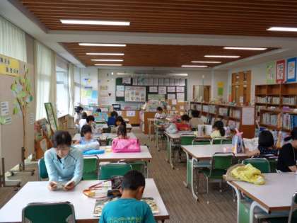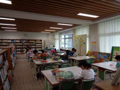 受付を済ませた低学年の児童は、下校時刻まで図書室で静かに本を読んで過ごします。(副校長)
