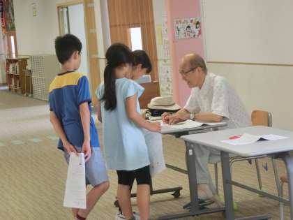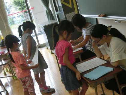 この夏の勉強会開催にあたって学校を支援してくださる地域の皆様にご協力いただきました。子どもたちが解いた問題のまるつけをしてくださったり、わからないところを丁寧に教えてくださったり、あたたかく子どもたちの学習の様子を見守っていただきました。
