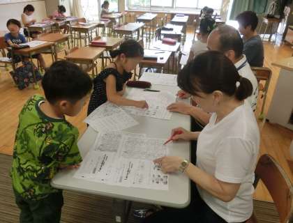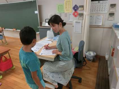 夏の勉強会2日目の様子です。教員と地域の皆様が子どもたちの学習を見守る1時間。多くの大人が子どもたちの学習を支援しました。2学期が始まる直前のこの勉強会、1学期の学習を振り返ること、生活リズムを取り戻すこと、多くの大人に見守られている時間を過ごすこと・・・意義ある1時間にしていくようたくさんのご協力をいただきました。子どもたちもほんとうに熱心に学習に取り組んでいました。