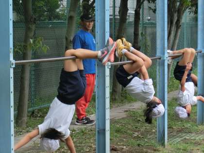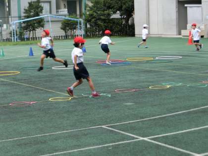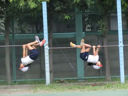 1年生の体育の様子です。この日は、「体つくりの運動遊び」に取り組みました。体のバランスをとる動き、体を移動する動き、用具を操作する動きなど、楽しみながら運動しました。ケンパや鉄棒遊びをする子どもたち、生き生きとしていました。