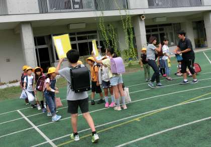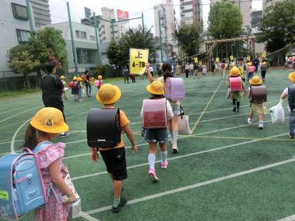 ご家庭のご協力で、ランドセルに校外班を記入したカードを入れていただきました。自分の班名をしっかり覚え行動できた子どもたち、とても立派でした。1年生は校外班ごとにまとまり、6年生が誘導しました。6年生がしっかり自分の役割を果たし行動してくれたおかけで、1年生も迷わず校外班ごとに整列できました。6年生の頼もしい姿に感心しました。