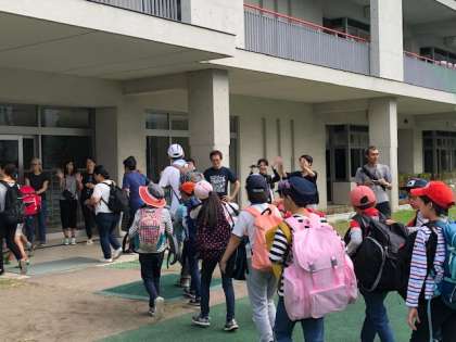 5年生の子どもたちが楽しみにしていた川場移動教室がはじまりました。学校で出発式を行い、引率の先生、お見送りの皆さんにあいさつをしっかりして、さあ、いよいよ出発です。