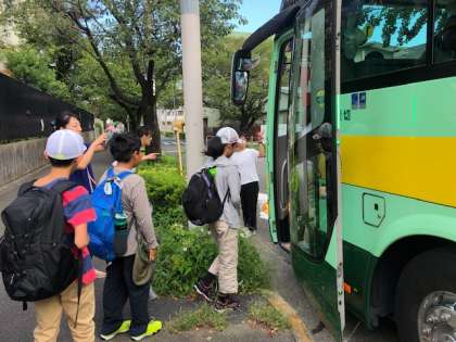 7時55分、バスに乗って出発。バスの中でガイドさんと運転手さんにあいさつして、川場までの道中を楽しんでいます。