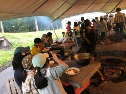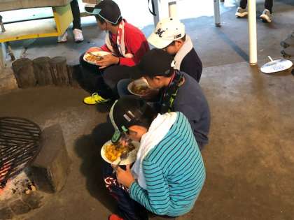 17時少し前にカレーができあがりました。あちらこちらから「おいしい」と声が上がっています。自分たちの力で全てやり遂げた満足感が何よりもの調味料になっているのかもしれません。
