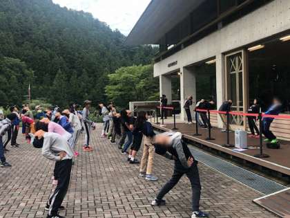 2日目の朝を迎えました。自分たちで朝の支度を終えて、朝会を行いました。「おはようございます」のあいさつの後、朝のラジオ体操で身も心もリフレッシュ。今日も1日がんばります。川場村は16℃。いいお天気です。