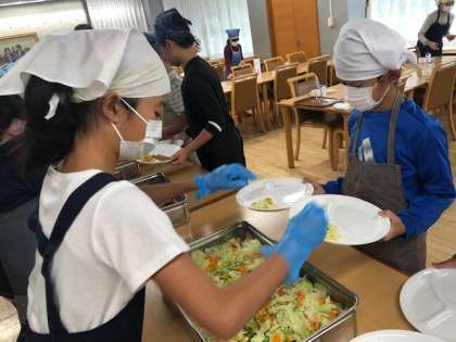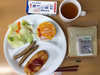 今日の朝食はパン食です。食事係の動きがすばらしく10分で配膳完了。班の後片付けも完璧です。