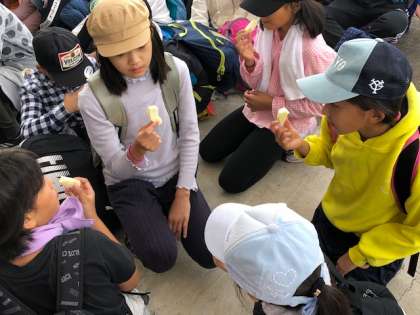 村巡りが進んでいきます。途中でりんご農園におじゃましました。甘くて芳醇な香りのする特別おいしいりんごジュースをいただきました。津軽とサンサというりんごの味比べもさせていただきました。りんごについてのお話もうかがいました。愛情込めて育てていることが分かり感動しました。