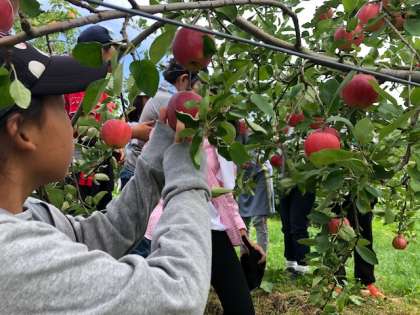 心を込めて育てているりんごを収穫させていただきました。津軽とサンサのうち、どちらかお気に入りの方を選ぶことができます。
