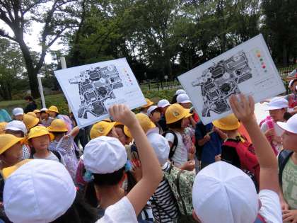 2年生が、グループ行動を先導します。とてもがんばっています。先生の話もしっかり聞いて、いよいよオリエンテーリングのスタートです。