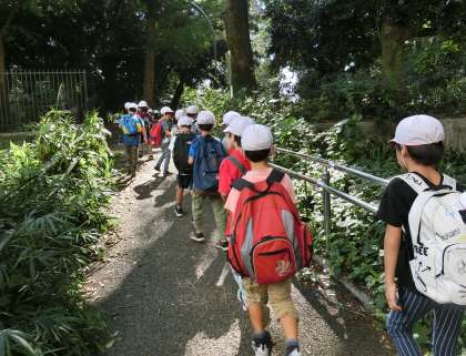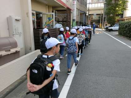 駒沢公園に向かう子どもたち。歩き方がとても上手です。しっかり集団行動がとれています。