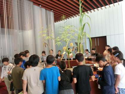 午後の見学場所の味の素(株)川崎工場に着きました。「うま味」についてたくさんのことを学びました。食のあゆみを360度の大迫力スクリーンで見学したり、お話を聞いたり、体験をさせていただいたりしました。初めて見る子が多かった「カツオブシ」を削る体験もありました。