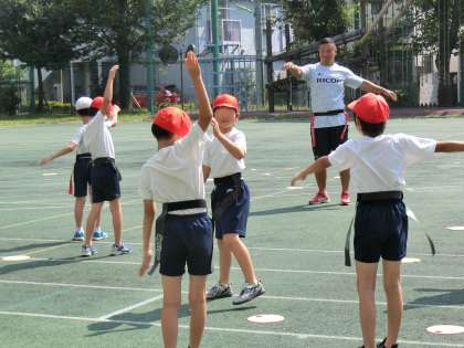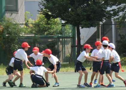 途中で指示された人数の仲間で集まるゲームも取り入れられていました。チームワーク、判断力の大切さを学びました。