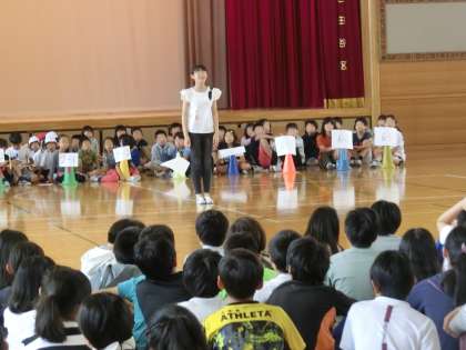 子どもまつり紹介集会を運営したのは、運営委員会の5・6年生たちです。司会進行、はじめの言葉、代表の言葉、子どもまつり参加への注意など、とても立派に集会を運営しました。当日も開会式・閉会式で活躍します。子どもたちのこの企画力・運営力に拍手を送りたいと思います。