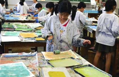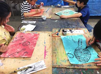 3・4年生、世田谷区オリンピック・パラリンピック「モザイクアート」プロジェクトのつづき。(図工専科)