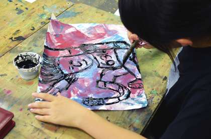 3・4年生、世田谷区オリンピック・パラリンピック「モザイクアート」プロジェクトのつづき。(図工専科)