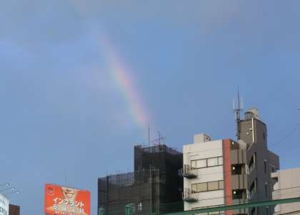 七輪でマシュマロやきにも挑戦しました。甘くてとろりとしたマシュマロをおいしそうに食べているとき、校庭から虹を見ることができました。子どもたちを見守っているかのようです。