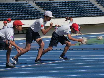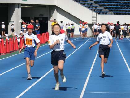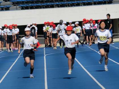 100メートルを全力で走る6年生。一生懸命に走る姿は輝いていました。