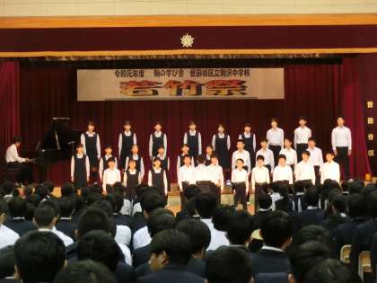 10月26日、駒の学び舎9年教育に共に取り組んでいる駒沢中学校で「若竹祭」が開かれました。合唱コンクールと舞台発表からなる生徒たちの活躍の場です。駒沢小学校の卒業生たちも、美しい歌声を響かせていました。駒沢小学校を卒業した子どもたちが、中学校でこんなにも活躍していることをとてもうれしく感じる1日になりました。