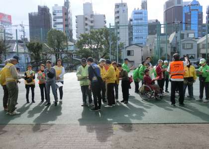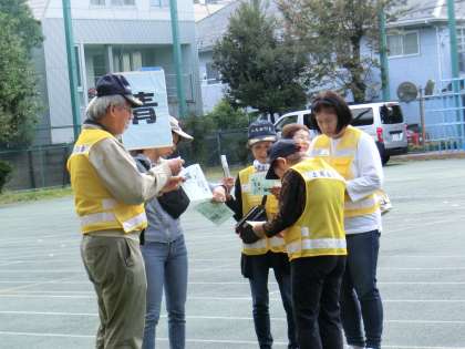 10月26日(土)、上馬地区合同防災訓練・駒沢小学校避難所開設訓練を開催しました。上馬西町会・上馬北部朝会・駒沢親和会の3つの町会が合同で行う地域防災訓練と、駒沢小学校で開設される避難所開設訓練を同時に行いました。前半は防災訓練です。消防署、消防団、警備会社の皆様にもご協力いただきました。