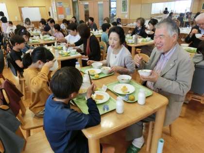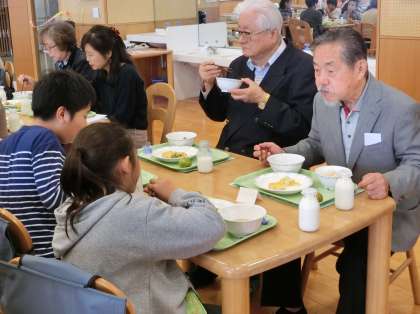 おいしい給食をいただきながら、和やかな団らんのひとときが続きます。