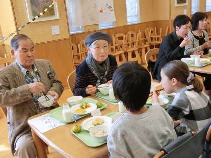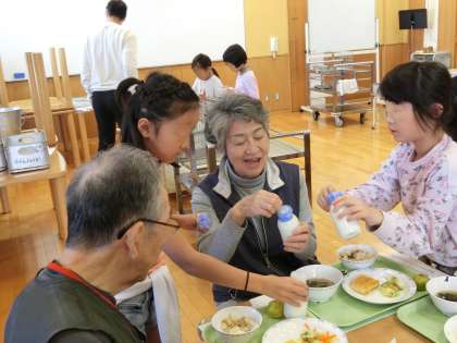 牛乳キャップの取り方を子どもたちがやさしく説明していました。グループごとに話が盛り上がりました。